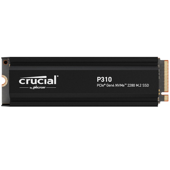 Upgrade your computer with exceptional storage using the Crucial P310 1TB M.2 2280 PCIe 4.0 NVMe Solid State Drive with Heatsink . Built using modern storage technologies such as Micron 3D NAND and PCIe Gen 4 connectivity, this drive delivers twice the performance of third generation NVMe SSDs. With 7100MB/s read and 6000MB/s write speeds and a data transfer rate of 16GT/s, you can enjoy near instant access to all your files with minimal latency. Plus, the 1TB storage capacity ensures you’ll have ample space for your favourite games, important documents, special photos, and much more. To ensure an extended lifespan and optimal performance, the P310 SSD is equipped with an integrated heatsink.